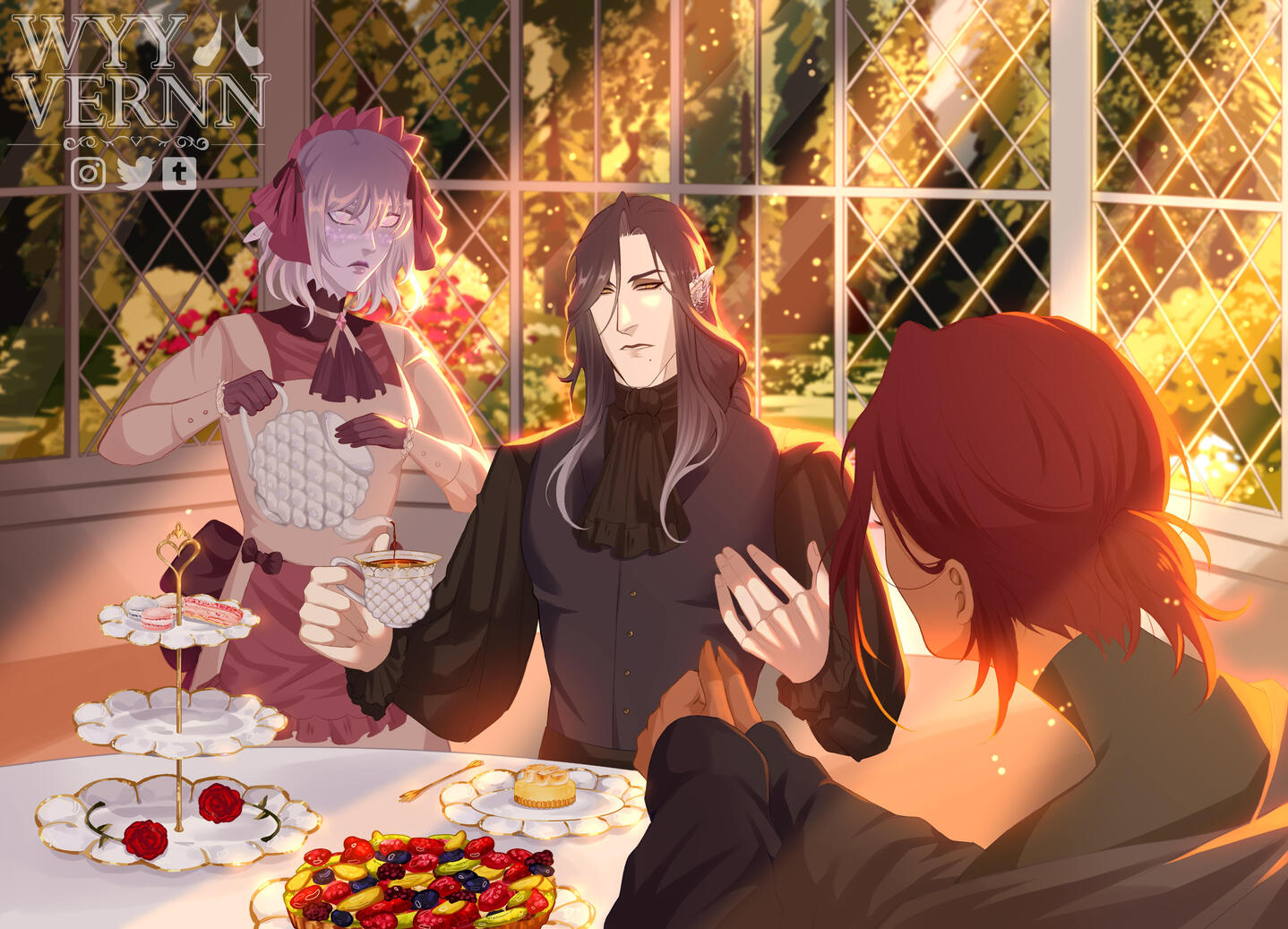 The Shattered Fragments - a fantasy world described as a celestial body of many different biomes spread across a chain of floating continents, formerly known as Ephemeridyll. Veron, the monochrome moon of death, and Yyeros, the white moon of life are the lunar guardians who watch over the Fragments, both playing a vital role in the daily affairs of the world.In the current period of The Shattered Fragments, much of the architecture, society and fashion in its many cities takes inspiration from the rococo and baroque era from 17th-18th century Europe, with other prominent concepts inspired by the Victorian era, among popular franchises such as Fable and Ancient Magus Bride.